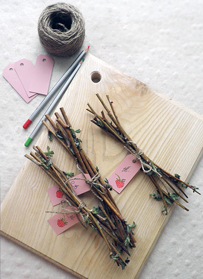 Якщо ви проґавили обрізку малинників восени, можна зробити це і взимку, заодно відібравши гілочки для приготування чаю. Гілочки малини, які не встигли одерев’яніти, замерзають просто з листям. Ідеальний варіант для заварки!