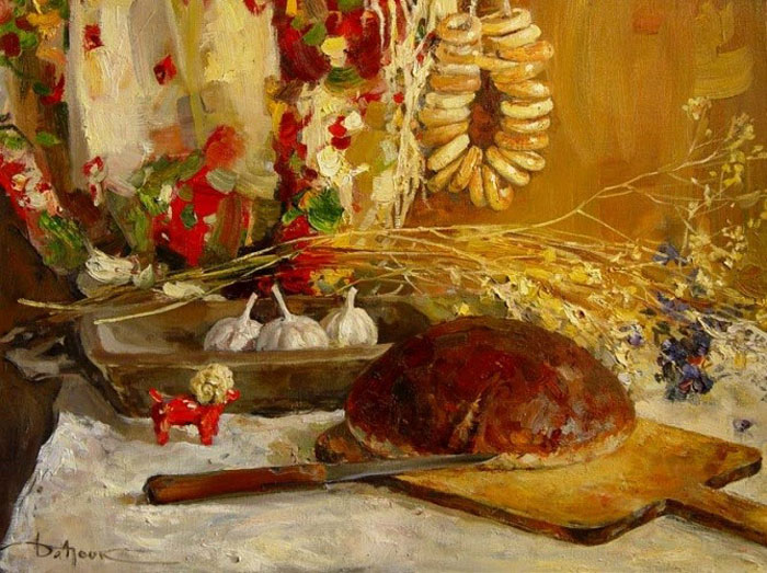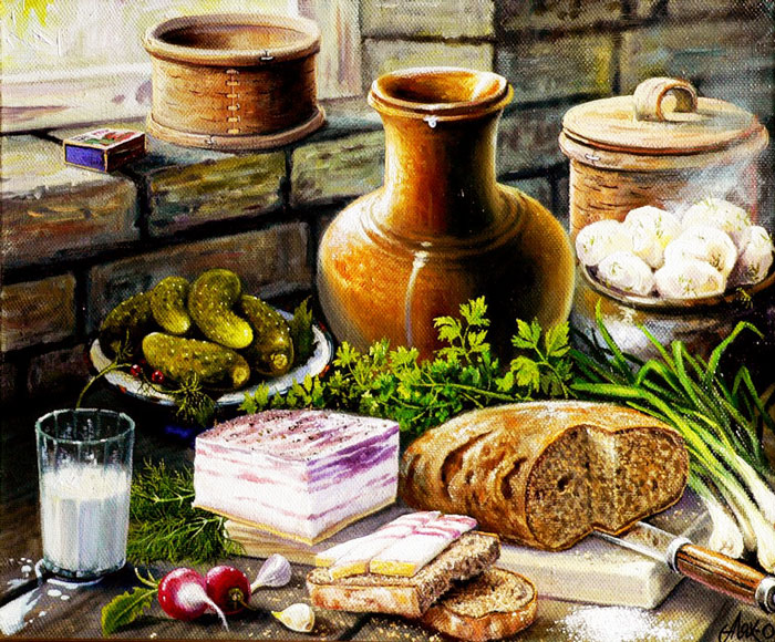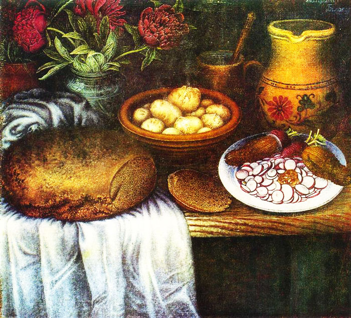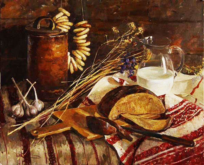 Картина “Хліб з молоком”, художник К. Дацук