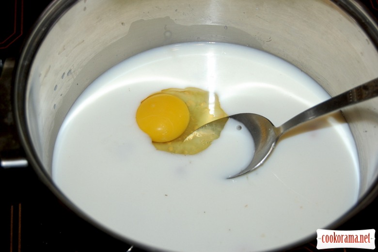 Влити шклянку теплого (37℃) молока і додати одне яйце. Перемішати: