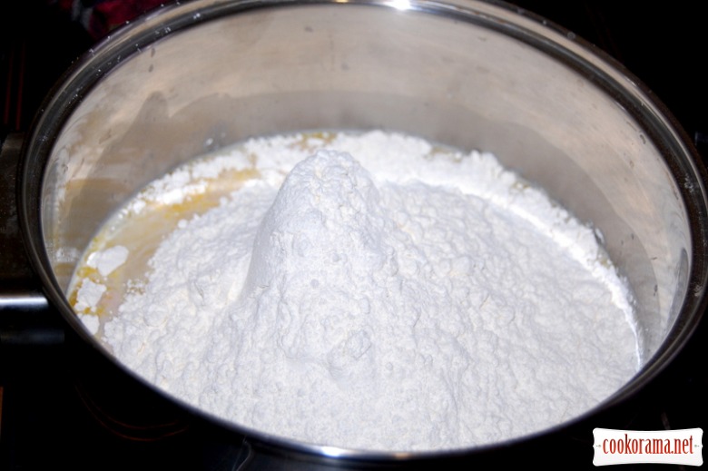 Частинами додавати просіяне борошно: