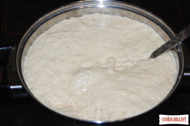 Поставити в тепле місце на 1,5 години для пробудження і гарненького розмноження дріжджів. Ось як виросте опара:
