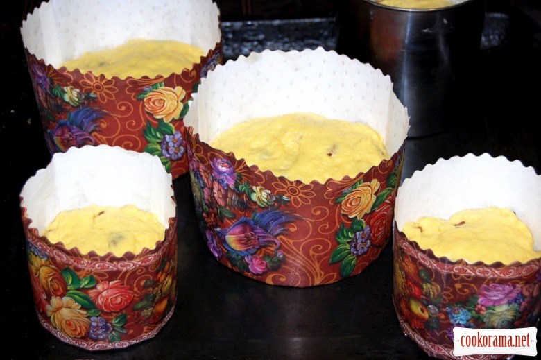 Викласти тісто в форми на 13 висоти. Поставити в тепле місце на 30 хвилин: