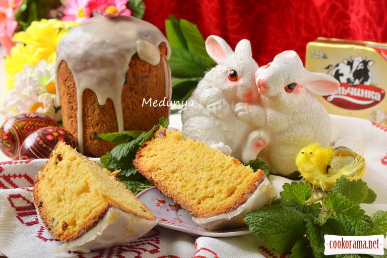 Паска виходить дуже ніжною, жовтенькою і пухкою:
