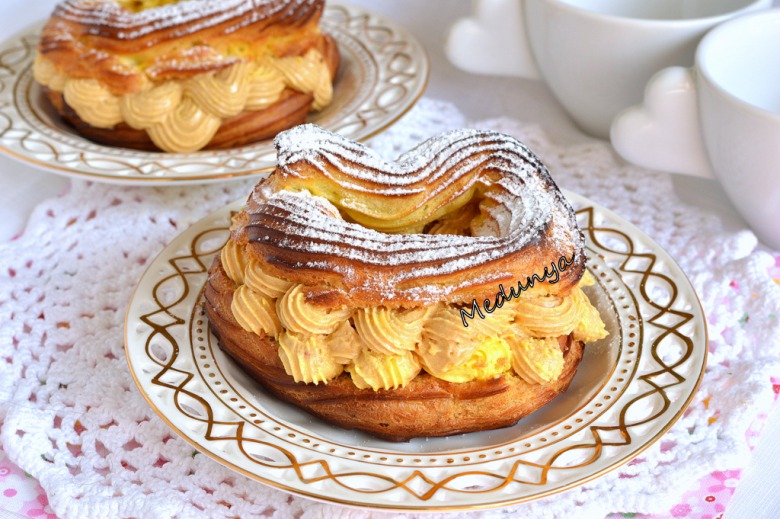 В банячку довести до кипіння масло з водою та молоком, сіллю. Зняти з вогню. Всипати просіяне борошно та, інтенсивно помішуючи ложкою, замісити тісто. Повернути банячок на вогонь і ще там помішувати тісто 2 хвилини. Зняти знову з вогню. Вистудити до 80℃ та по одному докладати яйця, щоразу добре вмішуючи їх у тісто. Наступне яйце докладати тоді, коли повністю вмішалось попереднє. Залишити тісто в холодильнику на 30 хвилин. Далі за допомогою кондитерського шприца сформувати на сухому деку кільця, залишаючи між ними проміжки, бо кільця підростуть. Викласти деко у попередньо розігріту до 250℃ духовку і чекати, допоки кільця не зарум'яняться (дверцята духовки не відчиняти!). Далі збавити температуру до 200℃ і випікати ще приблизно 15 хвилин до готовності. Ще гарячі кільця легенько проштрикнути ножем, щоб випустити зсередини гаряче повітря. Вистудити та розрізати кільця горизонтально навпіл. Начинити кремом та скласти знову. Зверху притрусити цукровою пудрою.