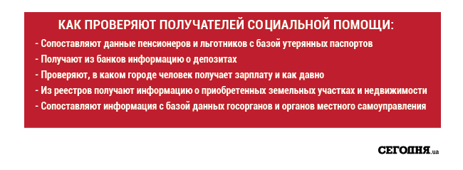 В Україні Міністерство фінансівпродовжує перевіряти одержувачів соціальної допомоги (пенсій, субсидійі т.д.). За попередніми підрахунками,"верифікувати" повинні 25 млн осіб. Уже зараз в "чорний список"потрапили десятки тисяч українців,які, найімовірніше, вже найближчим часом залишаться без допомоги від держави. Сайт "Сегодня.ua" з'ясовував, як Кабінет міністрів проводить першу в історії держави верифікацію одержувачів соцдопомоги. ukr.segodnya.ua