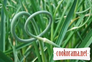 З пагонів часнику обірвати коробочку з насінням. Решту пагону нарізати. Довжина не має значення. Зварити у підсоленій воді 10 хв. Зцідити воду. Заправити олією, перцем.