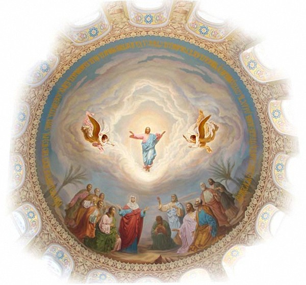 А на сороковий день після Воскресіння Христос з’явився апостолам в Єрусалимі та вивів їх на Єлеонську гору. Там звелів їм очікувати на сходження Духа Святого, а до того не розходитись і перебувати разом у спільній молитві. Після цього, здійнявши руки, Господь благословив апостолів, і коли благословляв, почав віддалятися від них. Врешті світла хмара сховала Його від очей учнів.