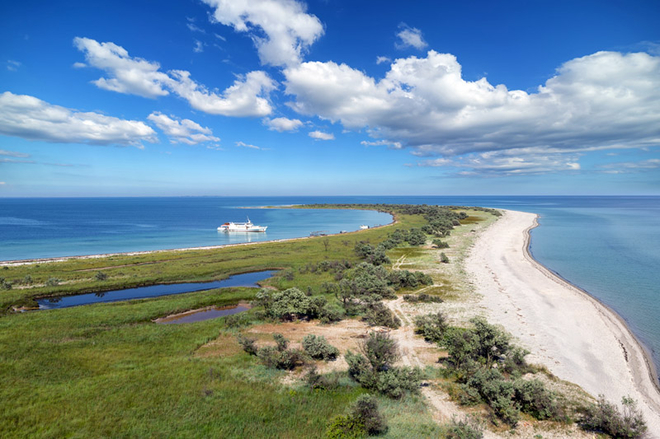 Безлюдний острів в Чорному морі. У грецьких джерелах згадується як Берег Ахілла. Вся територія острова і частина прилеглої акваторії входить до Національного природного парку «Джарилгацький». Це найбільший безлюдний острів в центральній Європі. Фауна і флора острова настільки цінна, що більшість видів занесені до Червоної книги. Тут можна зустріти оленів, муфлонів, єнотовидних собак, зайців і т.д. Найчистіше море, свіже морське повітря — і ти обов'язково повернешся сюди знову і знову.