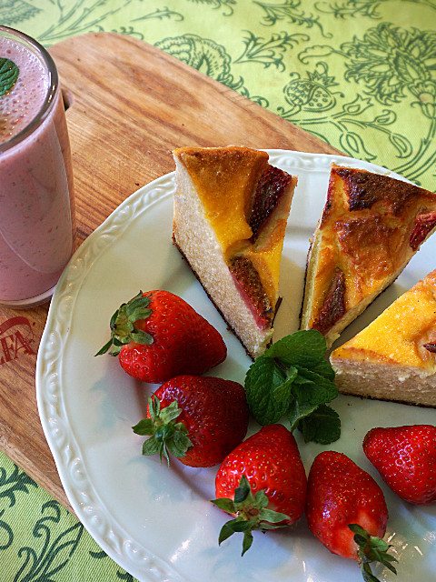 І до сирничка дуже смакуватиме трускавково-м’ятний коктейль. Тут ще простіше – зблендерувати молоко, трускавки, трошки цукру і м’ятку в високому дзбанку. Блендер треба піднімати вверх-вниз, щоб вийшли гарні бульбашки.