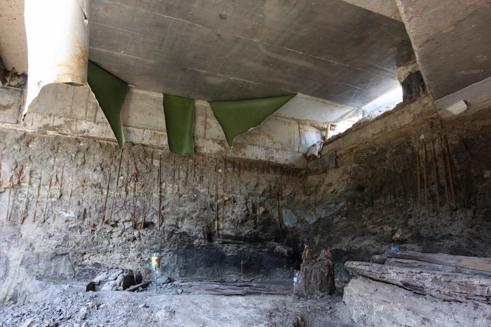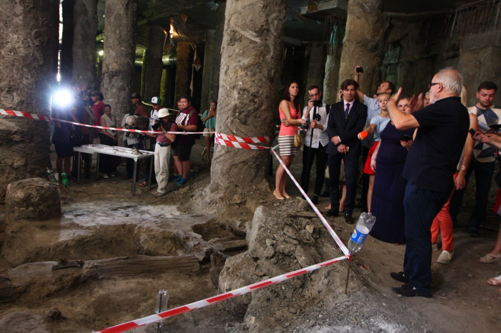 Майданчик розкопок відгороджений зеленим парканом. Розкопки проходять на глибині 5 метрів. Фактично це печера з залізобетонними колонами та містичними візерунками на стінах.