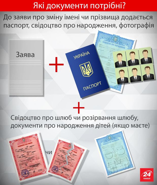 Як зазначалося вище, насамперед, треба написати заяву про зміну імені. До заяви додається паспорт та свідоцтво про народження. У разі потреби – свідоцтво про шлюб чи розірвання шлюбу, документи про народження дітей (якщо, звичайно, вони є).