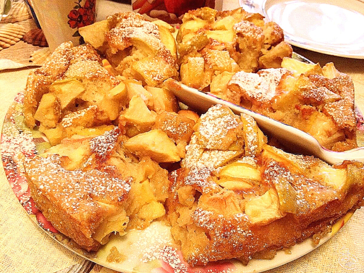 - Отриманим тестом залити яблука і випікати при 180 °С, 25-30 хв.