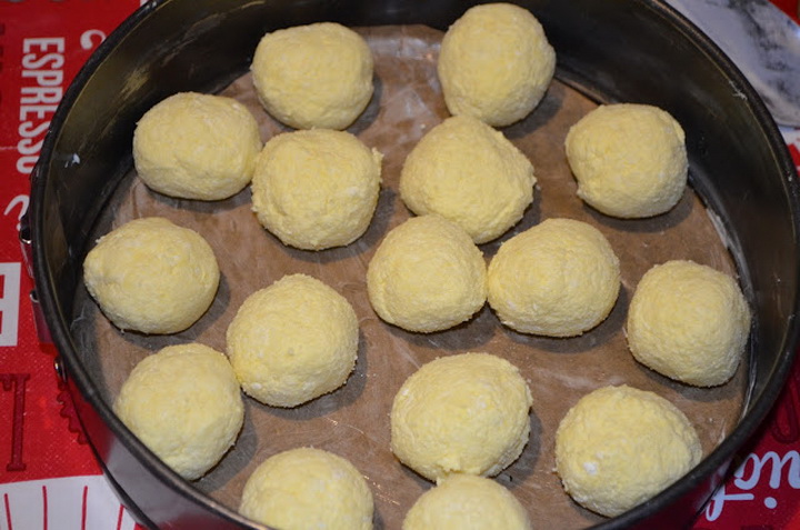 З маси мокрими руками формуємо кульки і викладаємо його на дно форми рівномірно по колу.