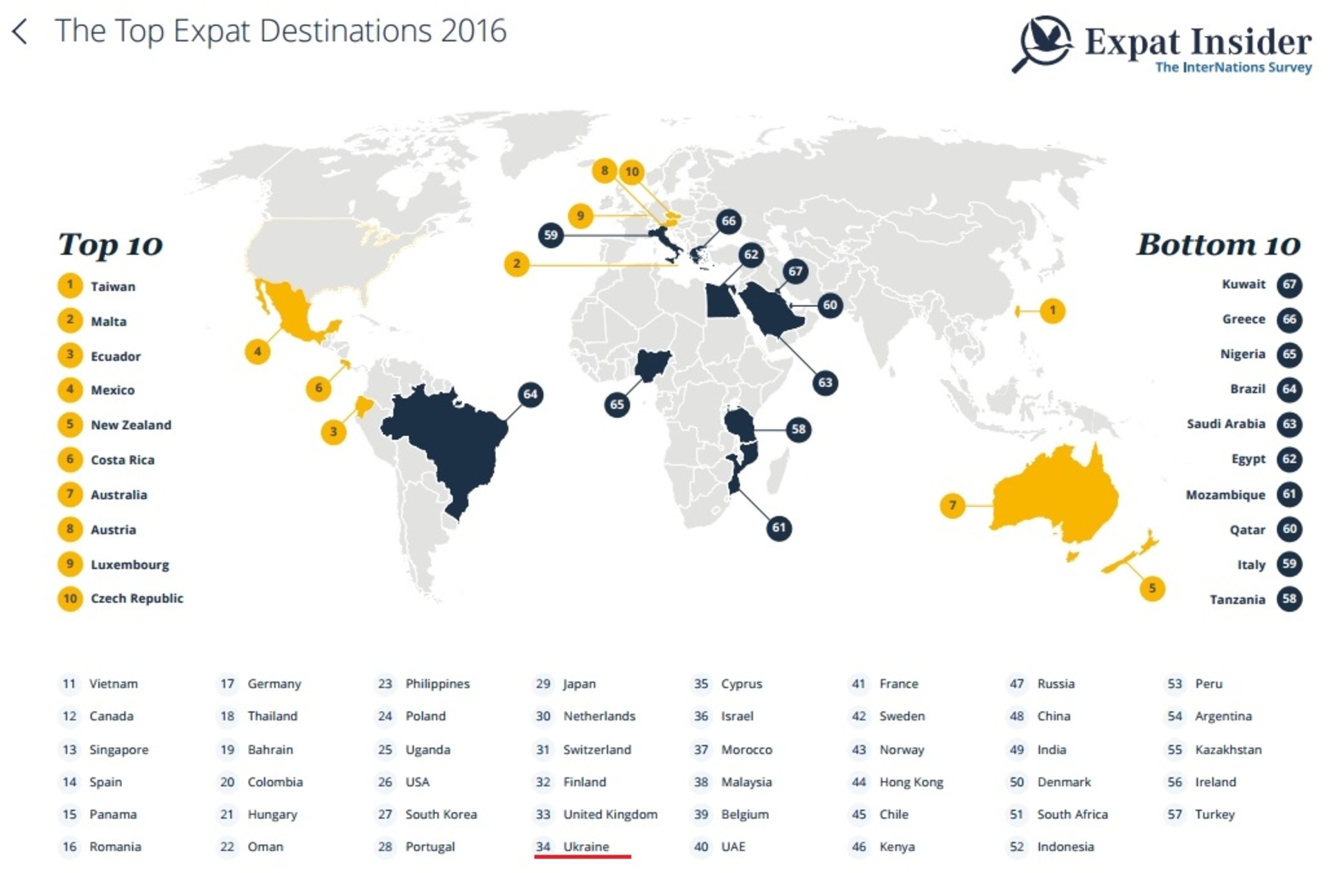 Про це свідчить рейтинг Expat Insider 2016, укладений InterNations – одним з найбільших міжнародних співтовариств для людей, які живуть і працюють за кордоном.