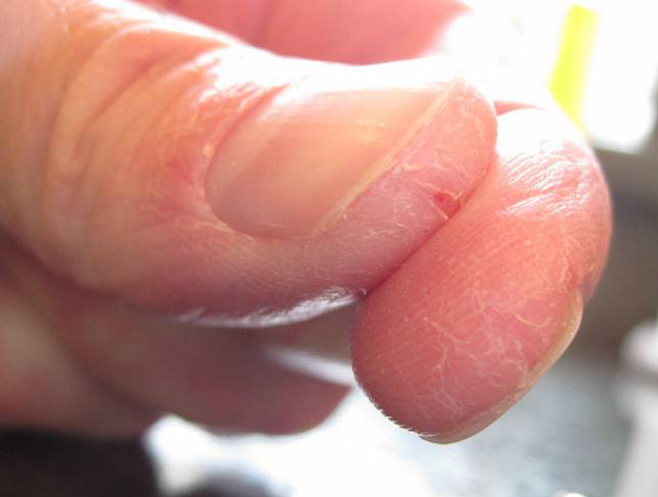 - Грибкові рукавички. Грибок призводить до розтріскування пальців. З грибком можна зіткнутися в лазні, готельному душі, в басейні.