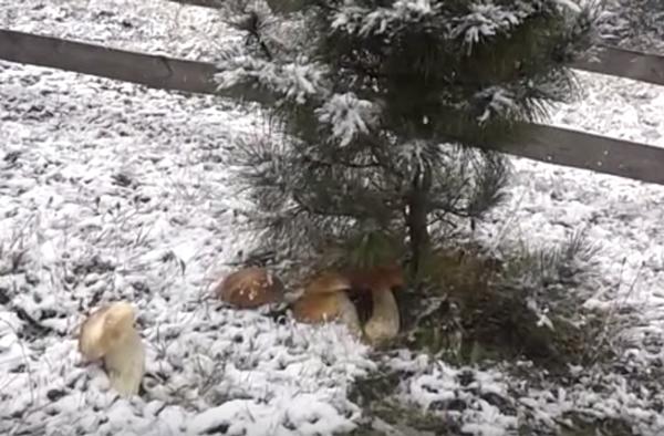 Сніг — не перешкода. У Карпатах продовжують збирати гриби. ВІДЕО