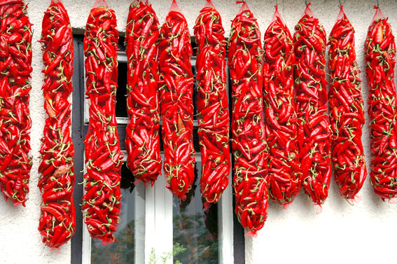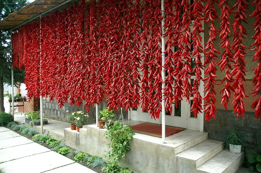 Так, робота з перцем – цілорічна, наголошує фермер Василь Гіді, але саме зараз Добронь найколоритніша: перець уже зібрали, і яскрава паприка прикрашає майже кожне обійстя. Він проводить екскурсію як власним господарством, так і обійстями сусідів і розповідає: у гірляндах перець не тільки сушать – нанизаний на нитки або зібраний у сітки, овоч достигає і набуває найяскравішого кольору.