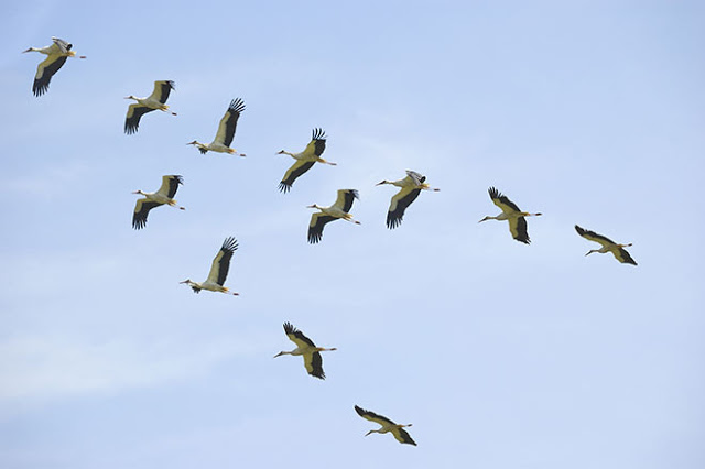 "Наприклад, червонокнижнi сiрi журавлi цього року не поспiшають летiти в Пiвнiчну Африку, бо й в Українi погода сприятлива. I торiк вони вiдлетiли не "запрограмовано" у вереснi, а лише у груднi! Судячи з поведiнки птахiв, так буде й цьогорiч, -- пояснює екскурсовод Раїса Яковлєва. -- Вiдповiдно, справжньої зими до середини грудня навряд чи варто чекати".