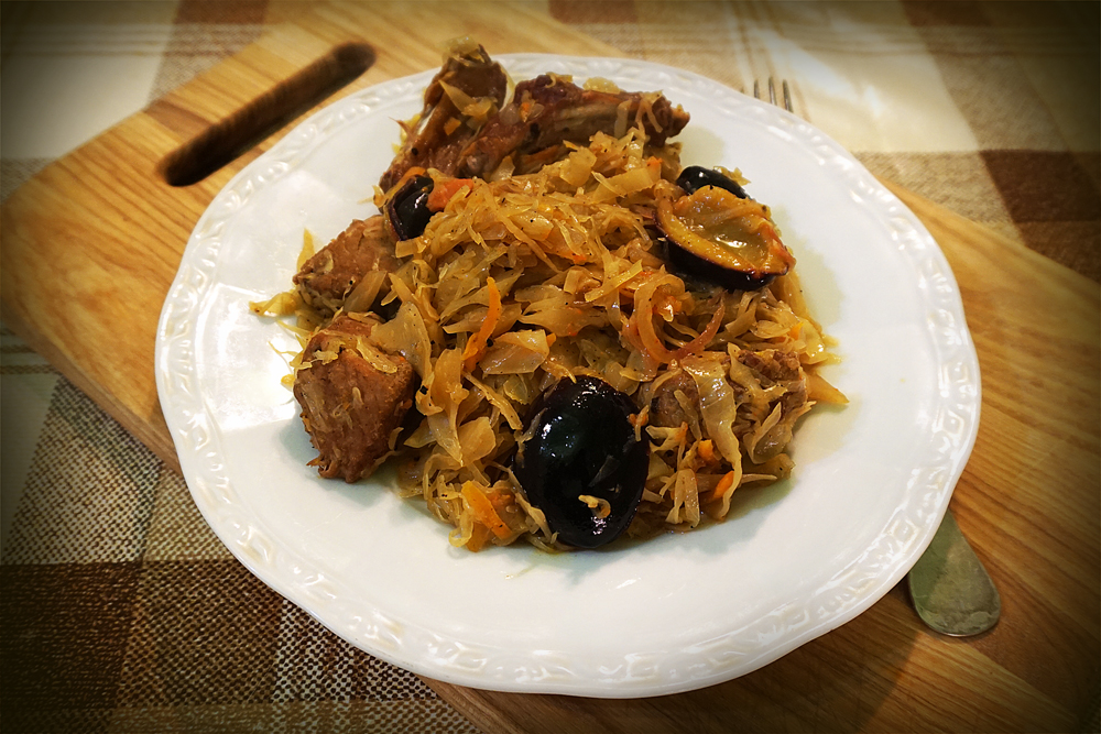 З біґосом – як з борщем: у кожної господині він свій. Класично біґос вариться в окремих банячках, потім змішується і доварюється. Але я роблю все послідовним методом – так зручніше в наших кухонних умовах. Також не люблю додавати до біґоса ковбасу, зате волію давати свіжі яблука чи сливки, замість чорносливу.