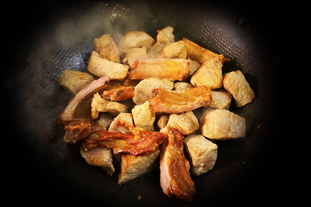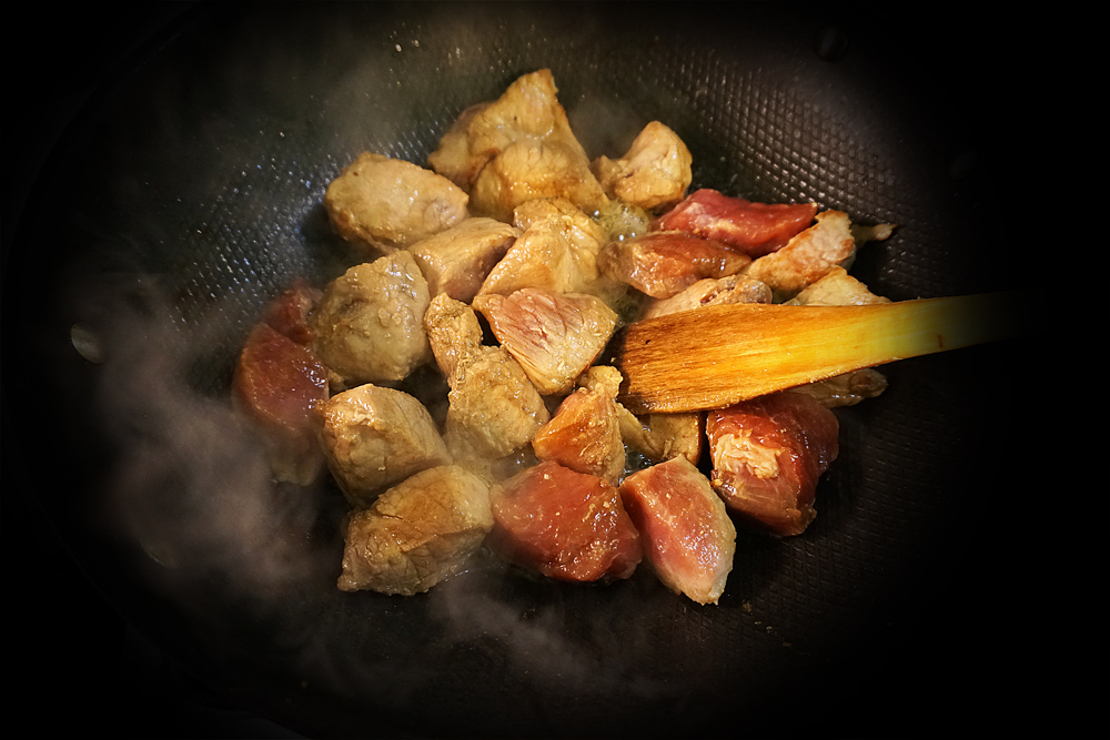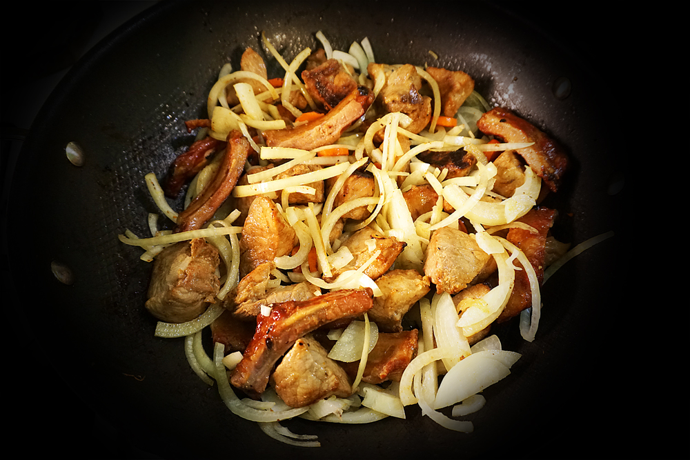 На гарячий смалець вкинула м’яско і дала зарум’янитися.