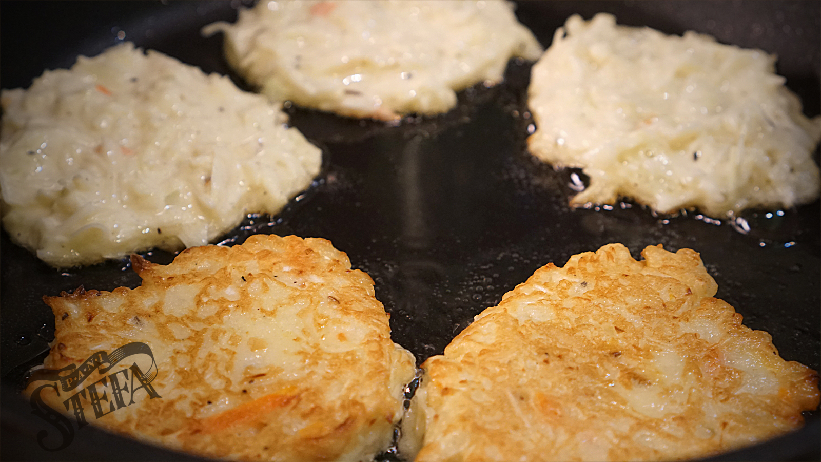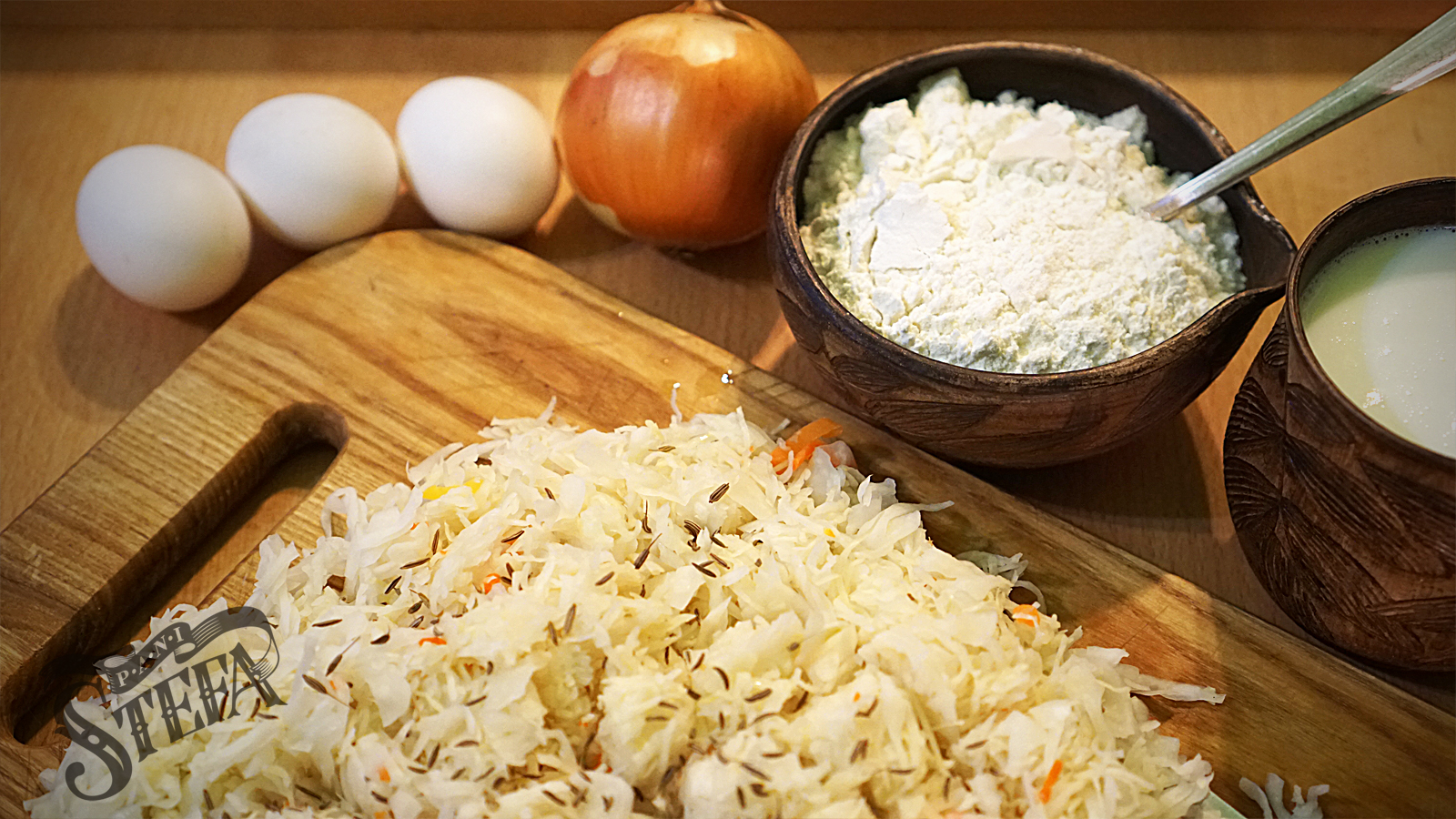 Отже, капусту відтиснути, якщо мокра і порізати дрібненько. Цибулю посікти в дрібну костку. В мисці змішати молоко, муку, соду, сіль і яйця, щоб вийшло тісто, трохи густіше, ніж як на налисники. Додати капусту, цибулю і кмин, добре вимішати.