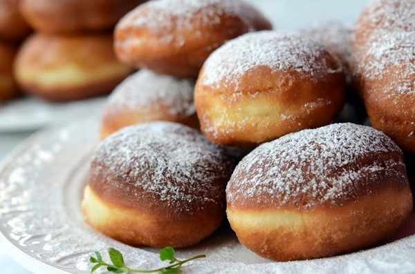 Можна заповнити пампушки джемом за допомогою кондитерського мішка або просто прикрасити цукровою пудрою зверху.