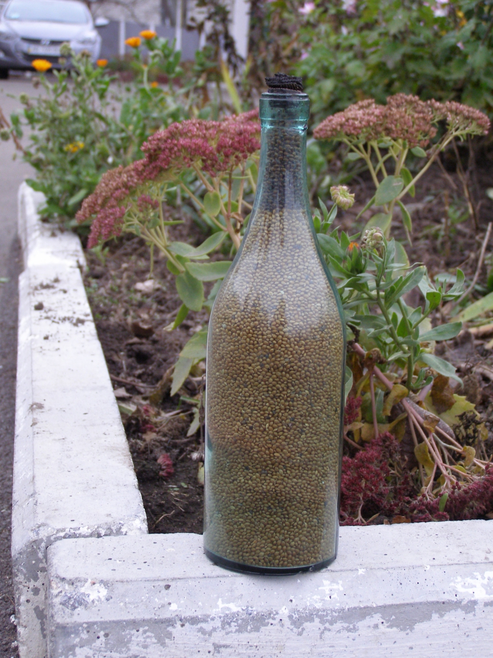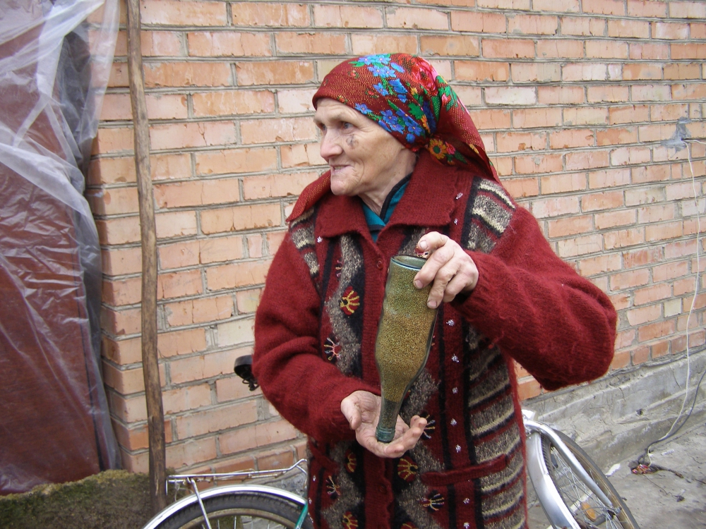 "Вдарив сокирою по кореню. Земля розпушилася і я побачив дно пляшки. Через скло помітив зерна проса. Таке чисте, ніби його щойно насипали. Зерна почорніли тільки в горловині. Дід мабуть щільно наштовхав його в пляшку" - розповідає 40-річний Роман Сорока.