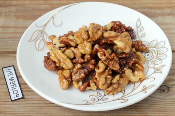 Карамелізовані в меду волоські горіхи це відмінне доповнення до десертів і салатів, а так само просто ласощі. Пропонуємо простий і швидкий спосіб їх приготування в мікрохвильовій печі.