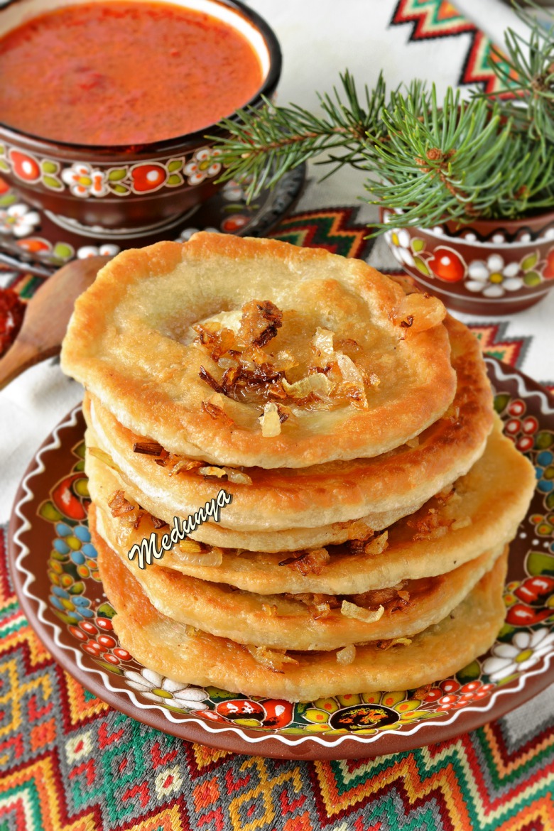 Взяти склянку кисляку, домішати просіяне борошно з содою до такого стану, щоб тісто було м'якеньким(можна ще докласти одне яйце)… Далі накрити тісто у мисці рушничком та залишити на 20-30 хвилин. Після цього розділити тісто на шматочки і кожен розкачати у тонкий коржик діаметром 10-12 сантиметрів. Обсмажувати кожен коржик у добре розігрітому смальці на пательні. Під час смаження пундики підростуть і стануть пишними. Зазадалегідь слід підготувати перекладання: накраяти сало і витопити на ніжні шкварки. В кінці разом із салом насмажити вдосталь цибулі. І уже кожен гарячий пундик складати у глибоку пательню чи чавунець один на один, перешаровуючи їх шкварками з цибулею. Перед подачею викласти цю пательню(чавунець) у гарячу духовку(піч) на 5 хвилин. Подавати пундики до борща гарячими. М-м-м! Смакотища!