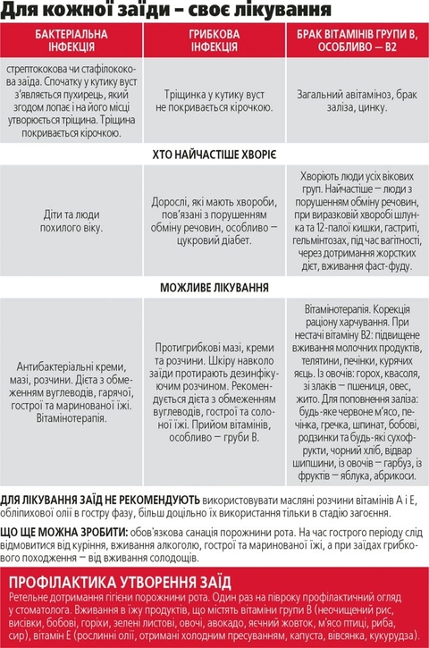 Перед тим, як лікувати заїди, потрібно визначити причину їхньої появи. Можна, звісно, і “тицьнути пальцем в небо” і спробувати як протигрибкові, так і антибактеріальні мазі, пригорщами їсти вітаміни і чекати результату. Та розумніше все-таки буде звернутись до лікаря: терапевта чи дерматолога.