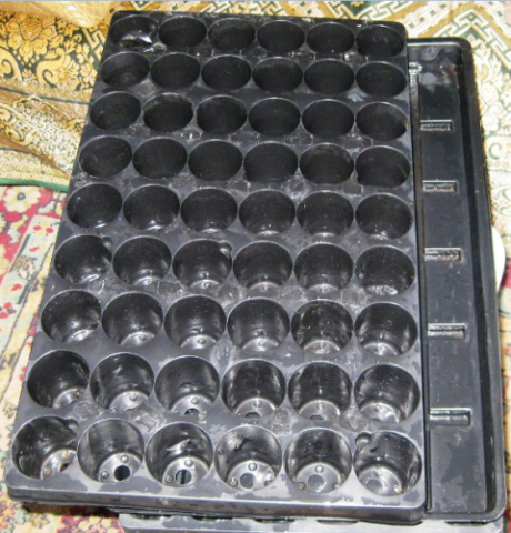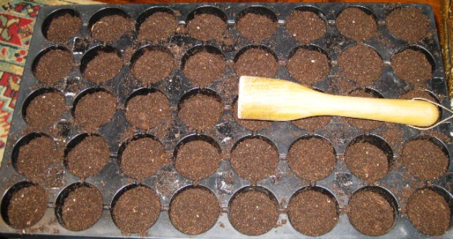 Касети можна використовувати не тільки для торф’яних таблеток. Я успішно вирощую розсаду, заповнивши її осередки поживним ґрунтом. Ґрунт зазвичай злегка пухкий, тому я його «притоптую». Заповнюю отвір касети не до верху.