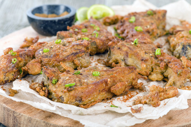 - В одній посудині збий яйця. В іншу насип борошно. По черзі занурюй печінку в борошно, потім в яйце і обсмажуй в розігрітій олії по 2 хвилини з обох боків до утворення рум'яної скоринки.