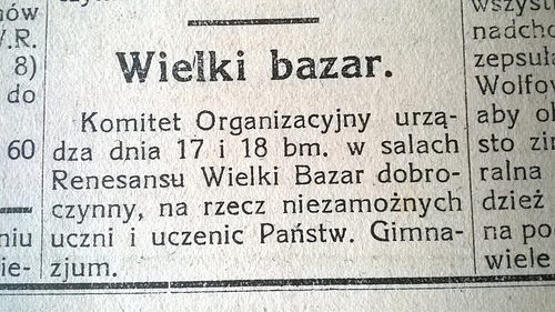 Оголошення в газеті «Еcho R?we?skie» про влаштування благодійного ярмарку. 1927 рік