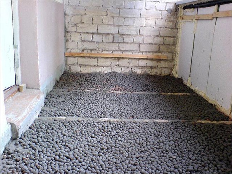 - Керамзит. Не дуже дорогий і не дуже ефективний, порівняно з мінеральною ватою та пінопластом, варіант. Щоб добитися потрібного ефекту, особливо у ситуаціях, коли балкон у сусіда знизу не засклений, потрібно буде підсипати неабиякий шар цього матеріалу – мова йде про 200-250мм підсипання. Це відмінний варіант для кімнат у будинку чи квартирі, але ніяк не для холодного і неопалюваного балкона.
