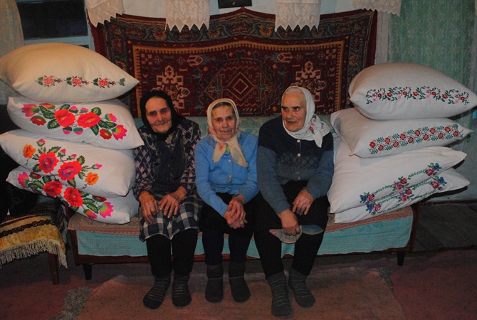 — І для чого ті мужики здалися, — спирається на стос вишитих подушок, щоб підвестися з ліжка, 83-річна Катерина Бойко із села Яшники Лохвицького району Полтавської області. — Не хочу про них чути. В других чоловік горілку п'є, а жінка робе. А ми і за чоловіків, і за себе робили. І дрова рубали, і корову держали, й свиней. Нам ніхто не носив, не косив. gazeta.ua
