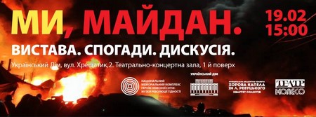 15:00 – прем’єра вистави-спомину "Ми, Майдан" у виконанні національного театру "Колесо" в концертній залі Українського дому. Після вистави відбудеться обговорення з учасниками подій на Майдані "Зріз пам’яті".