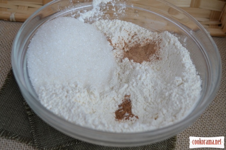 — змішати борошно, розпушувач, корицю, мускатний горіх, цукор.