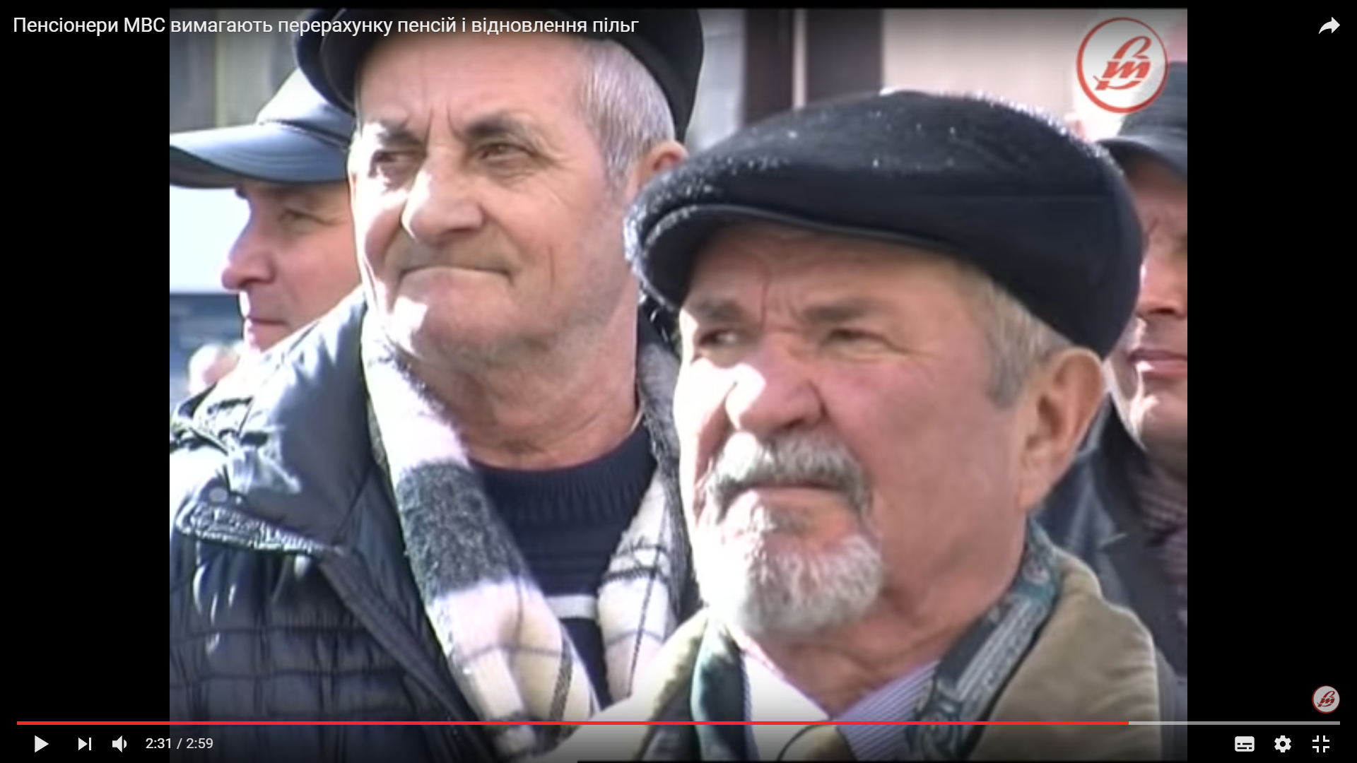 Пенсіонери МВС вимагають перерахувати їм пенсії та відновити пільги. Вони стверджують, що вже минуло більше півроку, як це мало статися. Пенсіонер МВС Ігор Александрук каже: «Ми добилися, що міністерство нарешті надіслало підстави для перерахунку пенсій, але тепер уже Пенсійний фонд гальмує».