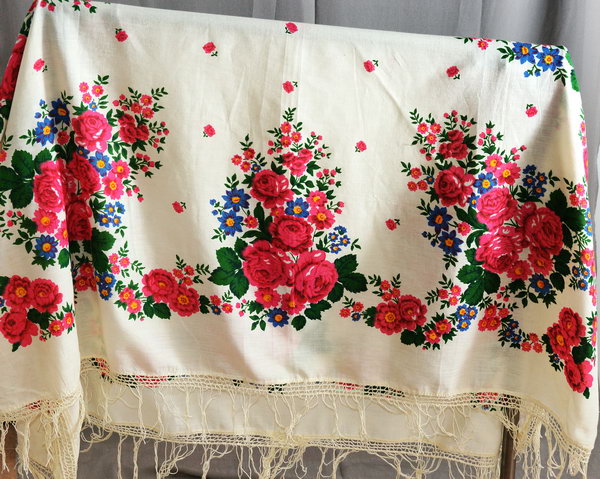 Також у колекції є хустка, історія якої, сповнена любові і надії, бере початок у далекому 1936 році. Цю хустку мені передала сім’я Романових із Харківської області. Напередодні війни чоловік подарував дружині цю хустку і в 1941-му пішов на фронт. Невдовзі жінка отримала звістку, що коханий зник безвісти. Взявши до рук цю хустку, вона відчула, що та тепла, а значить, чоловік живий і повернеться додому. Хоч ніхто з родичів й не вірив, але за кілька років чоловік повернувся і сказав, що тільки віра і любов дружини зберегли його від загибелі. Ця хустка дуже простенька, із сатину, але була в родині потужним оберегом.
