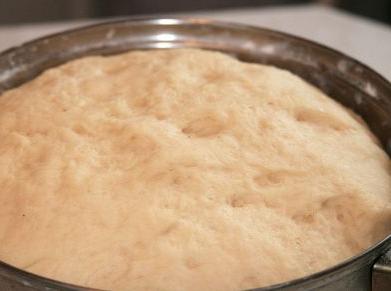 Змішуємо заварне тісто з опарою, додаємо 9 жовтків і топлене масло, а також рослинне масло, сіль і збиті з цукром білки. Засипаємо борошно, замішуємо м’яке тісто, яке залишаємо в теплому місці на кілька годин (щоб підійшло в 2-3 рази).