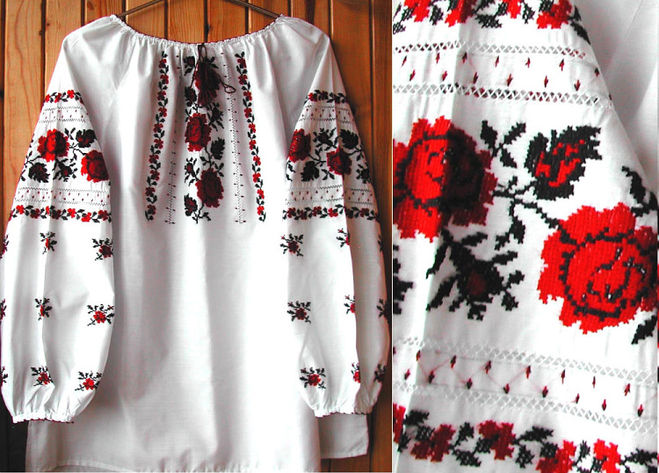 Ганна Яківна з радістю дістає із скрині реліквію і задоволено мовить: «Ось дивіться, як гарно збереглася. Бордовий колір ниток лишень трохи побляк від часу, а сам виріб привабливий і модний. Подумати тільки – сорочці цій уже 215 років!»