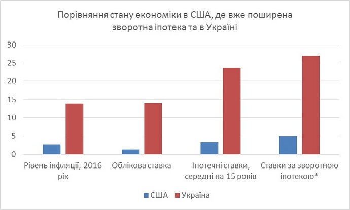 * - прогнозована ставка за зворотною іпотекою для України в теперішніх умовах