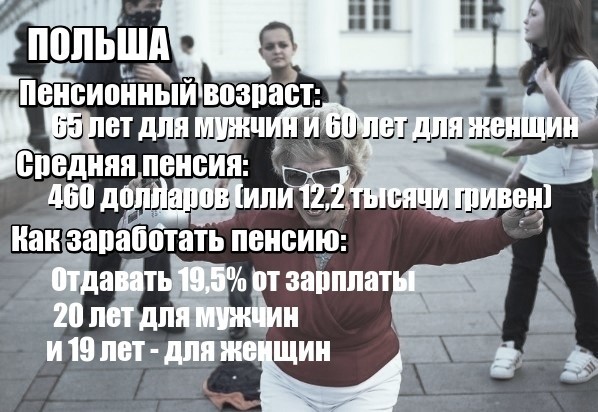 Обов'язкова умова для отримання трудової пенсії – мінімум 15 років стажу для жінок і 20 років – для чоловіків. Внески в Пенсійний фонд на кілька відсотків нижчі від українських – 19,5 проти 22%. При цьому половину від цієї суми полякам платить роботодавець.