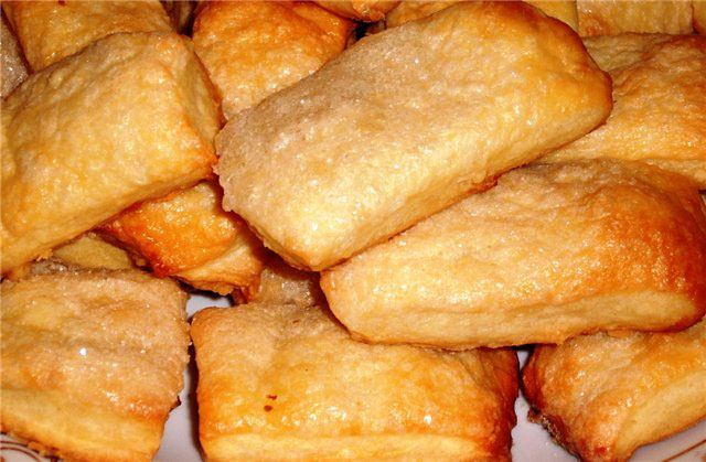 - Розкачуємо тісто шаром товщиною в півсантиметра і нарізаємо кружечками, квадратиками або ромбиками.