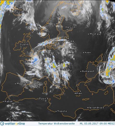 Західна Європа зараз у дощах та прохолоді, циклон з фронтами розважаються, Південна Європа - у теплій погоді, як і належить півдню і, як бачите, над Україною - чисте сонячне небо. Фото.