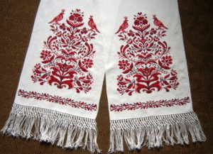 На порозі літо, починається пора весіль, тож саме час розглянути особливу категорію вишивок – весільний рушник. Адже саме його стелять під ноги молодятам, благословляючи на довге і щасливе подружнє життя. Для початку з’ясуємо: чому молода пара стає саме на рушник? Бо рушник означає дорогу, в даному випадку – дорогу життя, яку їм треба пройти разом. На ньому нанесено магічні знаки-узори – своєрідний дороговказ. Вважають, що найсильнішою магія є тоді, коли дівчина вишиває собі весільний рушник власноручно, наповнюючи кожен стіжок силою своєї віри, своєї мрії, своєї любові, вона створює власну модель сім’ї. Інколи такий рушник може передаватися від батьків до дітей, зрозуміло, якщо в старшого покоління життя склалося вдало.