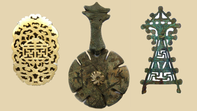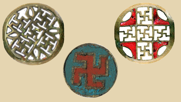 Також, свастику знаходимо на намисті, знайденому на території сучасного Ірану. Ця фібула з кольоровими емалями належала громадянину Рима. Дуже схожа фібула належала сучаснику римлян, який жив на території України. Свастика стала світовим надбанням, але продовжувала шануватися її творцями. Докази цьому ми бачимо на численних побутових предметах та ажурних фібулах черняхівської та київської культур.