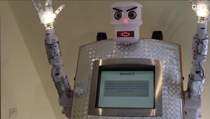 В одній з церков у центрі німецького міста Віттенберг почав працювати священик-андроїд. Квадратний робот із залізними руками, лампочкою замість носа, круглими очима і дисплеєм на животі вітає парафіян і благословляє їх, повідомляє Daily Mail.