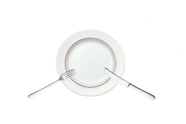 Якщо тарілка порожня, покладіть ніж та виделку літерою «Л». Лезо ножа направлене вліво, а зубці виделки – вправо. Ручки приборів звисають з тарілки над столом. Цим самим жестом ви показуєте, що страви, яку принесли, було надто мало.