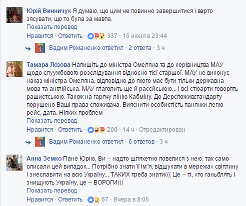 За словами Шевчука, працівниця МАУ, яка виявилась українкою, намагалась зняти його з рейсу за те, що він почав з нею говорити рідною мовою.
